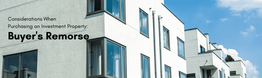 When I was working on my MBA at Washington University, I had a finance professor discuss “Buyer’s Remorse.” He described Buyer’s Remorse as a situation where the buyer felt that they had to purchase the goods or services at the price offered without very little inspection or consideration – They did NOT want to “miss out”! The buyer then, after making their purchase, realizes that the investment/purchase would not bring the value that they thought that it would. We’ve all been in the situation where we purchased an investment security (stock) only to see it devalue over time.  Unfortunately, this is a scenario that I’ve also seen happen to property investors.